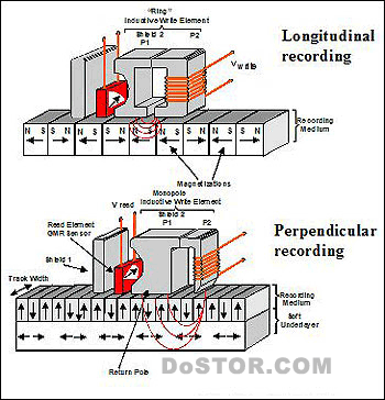 垂直记录技术让数据位站立在磁盘表面上,而不是像现有的水平记录技术这样平躺在磁盘表面上,这样可以在盘片上存储比水平记录更多的数据,为硬盘密度未来的扩展提供了一个平台。当前商用硬盘的最高密度为138Gb/平方英寸,而采用垂直记录技术的硬盘,其密度理论值可达500Gb/平方英寸,如果与磁头发展等其他技术进行有效结合,硬盘存储容量有望在未来的10年内有10倍的增长。这种新技术还提高了硬盘在恶劣环境中读写数据的可靠性。