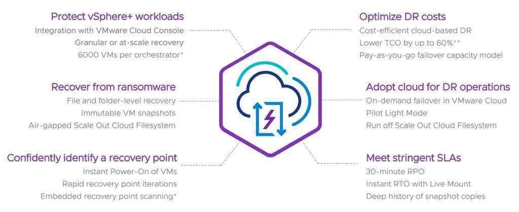 混合云无缝拓展:从私有云到混合云的关键是VMware Cloud,在使用本地私有云资源的同时,用户也可以混合使用VMware Cloud在公有云上的资源,例如用户可以将灾难、备份迁移到公有云,降低运营和管理的成本。VMware Cloud在公有云也有助于更好地防范勒索软件的攻击。VMware为此提供了Cloud Disaster Recovery的方案和服务。据了解,VMware正在开发更多的附加云服务,为用户提供简化的上云服务。