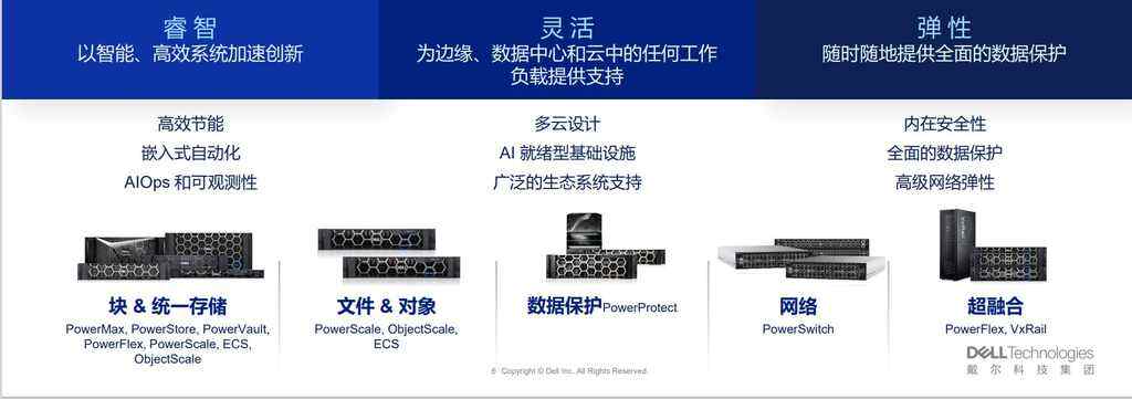 在此次峰会上,戴尔科技重磅推出了一系列业界领先的、旨在构建现代化基础架构、催化企业加速创新的全新存储、服务器、数据保护产品和解决方案。推出了PowerStore、PowerEdge、PowerFlex、PowerScale、PowerProtect、PowerEdge XE9680、PowerEdge T160和R260等数款新品,助力企业筑牢数字底座,利用数字技术进行创新,实现数字化转型和业务的持续增长。