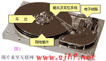 硬盘存储数据是根据电、磁转换原理实现的。硬盘由一个或几个表面镀有磁性物质的金属或玻璃等物质盘片以及盘片两面所安装的磁头和相应的控制电路组成(图1),其中盘片和磁头密封在无尘的金属壳中。