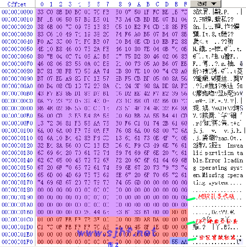 你的硬盘的MBR引导代码可能并非这样。不过即使不同,所执行的功能大体是一样的。这里找wowocock关于磁盘mbr的反编译,已加了详细的注释,感兴趣可以细细研究一下。