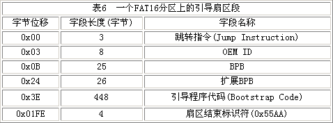 MBR将CPU执行转移给引导扇区,因此,引导扇区的前三个字节必须是合法的可执行的基于x86的CPU指令。这通常是一条跳转指令,该指令负责跳过接下来的几个不可执行的字节(BPB和扩展BPB),跳到操作系统引导代码部分。
