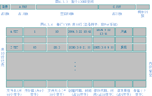 这样设计的结构绝对可以对文件进行正确的读写了。接着让我们设计的文件系统工作吧。先改动个文件,比如A.TXT,增加点内容吧!咦?增加后往哪里放呀,虽然存储块的后面有很多空间,但紧随其后B.TXT的数据还顶着呢?要是把A.TXT移到后边太浪费处理资源,而且也不一定解决问题。这个问题看来暂时解决不了。