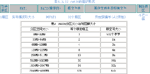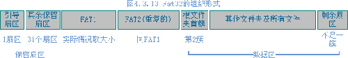FAT32与FAT16的原理基本上是相同的,图4.3.13标出了FAT32分区的基本构成。