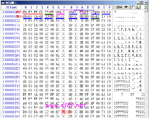 第3簇中存放的数据是0x0005,这是一个文件或文件夹的首簇。其内容为第5簇,就是说接下来的簇位于第5簇??〉 FAT表指引我们到达FAT表的第5簇指向,上面写的数据是”FF FF”,意即此文件已至尾簇。