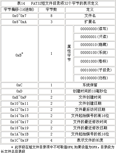 (1)、这是FAT32短文件格式目录项的意义。其中文件名、扩展名、时间、日期的算法和FAT16时相同的。