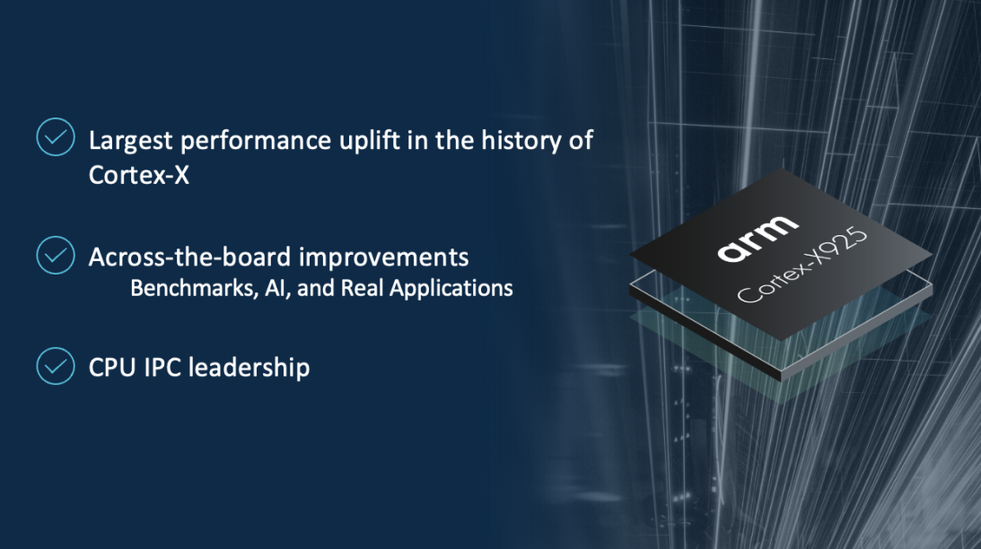 作为高性能解决方案,Cortex-X925 可满足不断发展的设备和应用场景需求,确保用户畅享优质体验。全新设计显著提高了速度和运行效率,尤其适用于人工智能应用。