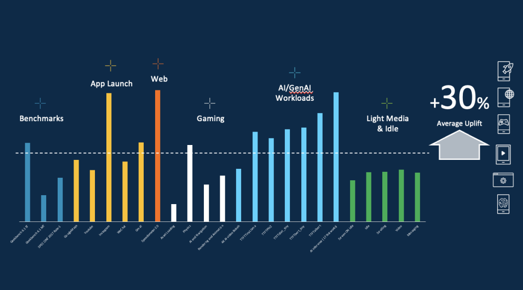 与过往从 Arm Cortex-X1 到 Cortex-X4 CPU 的年度同比性能提升幅度相比,此次的性能增幅高出了 1.5 倍,意味着能为最终用户带来卓越的性能体验,同时能有效缓解高频下过热问题。