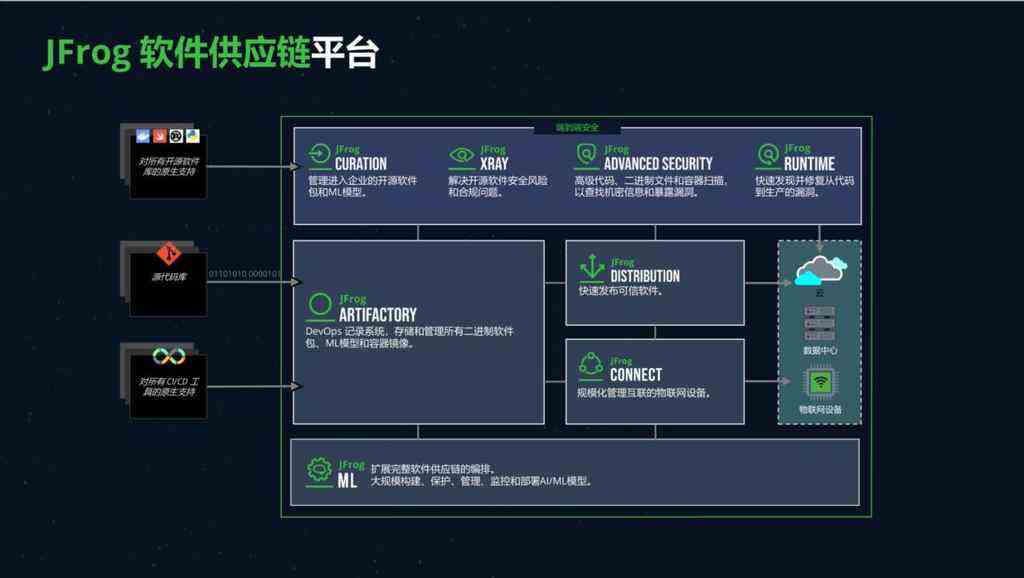 若论JFrog EveryOps统一平台上的核心产品,JFrog Artifactory当仁不让。但此次会议重点更强调了安全、分发、连接,分别对应Advanced Security与Runtime Security、JFrog Distribution与JFrog Connect;人工智能解决方案JFrog ML毫无疑义地“上榜”。