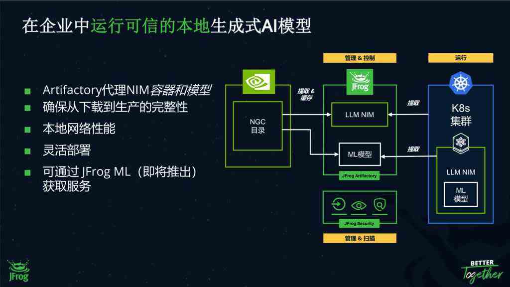传统NVIDIA的模型发布需要从NVIDIA模型中心区拉取模型再部署到NVIDIA训练集群中。JFrog帮助用户本地搭建Artifactory,通过代理NGC的NVIDIA模型中心把模型缓存在企业内部,支持从本地Kubernetes集群拉取镜像和拉取模型,既提升了镜像和模型的拉取速度,同时也帮助企业在本地实现模型化的管理。
