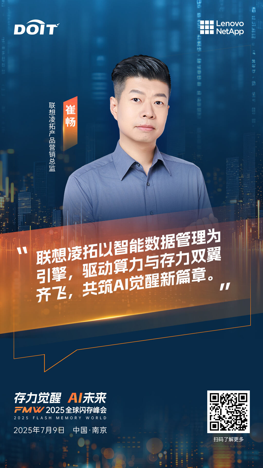 在2025全球闪存峰会上,联想凌拓产品营销总监崔畅发表了题为《闪存新理念 加速AI觉醒》的主题演讲,阐述了闪存与AI之间的“天堑”难题,以及如何通过构建智能数据基础设施,为企业驾驭AI之力提供了清晰的实践路径。