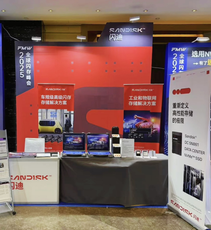 在2025全球闪存峰会现场展台上,闪迪重点展出了分别聚焦计算密集型和存储密集型场景的SN861和SN655两款企业级SSD。