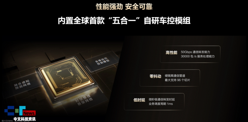 可以说,HUAWEI XMC直接重构了传统汽车底盘的底层架构,在硬件层面采用了业内领先的五合一车控模组,实现了Chip(芯片)级融合;