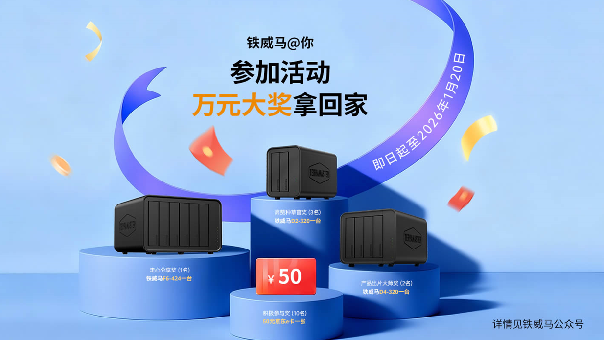 据悉,本次“铁威马@你,参加活动万元大奖拿回家”活动将围绕 TOS 7 beta 上线重磅开启,为新老用户量身打造多重惊喜福利。无论是追捧最新技术的极客先锋,还是相伴多年的骨灰级用户,新铁威马、老铁威马始终是你最可靠的数据守护者!活动以“铁威马陪你走过的存储时光”为核心,参与方式简单便捷:只需在社交平台发布图文内容,分享与铁威马产品的陪伴故事、使用体验或数据守护瞬间,即可参与万元大奖角逐。此次活动福利力度空前,大奖总价值高达万元,不仅参与门槛低,更以高获奖几率回馈广大用户,让每一位支持铁威马的朋友都有机会收获惊喜。有关活动的详细情报与参与细则,将通过铁威马官方网站、官方社交媒体平台陆续公布,敬请密切关注。