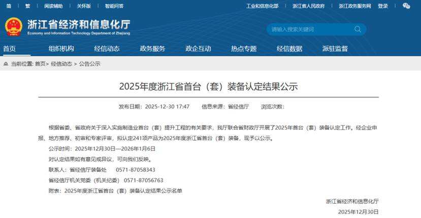 浙江省首台(套)装备认定工作,是贯彻落实省委、省政府“深入实施制造业首台(套)提升工程”的核心举措,旨在挖掘和培育制造业领域具有重大技术突破、自主知识产权的高端装备,加快构建首台(套)产品大规模市场应用生态,推动全省装备制造业向高端化、智能化、绿色化转型。
