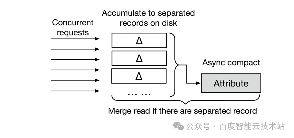 - 读操作:读取属性时(如 Stat 操作),系统会读取该属性的主记录与所有尚未合并的增量信息,合并后计算出属性信息。