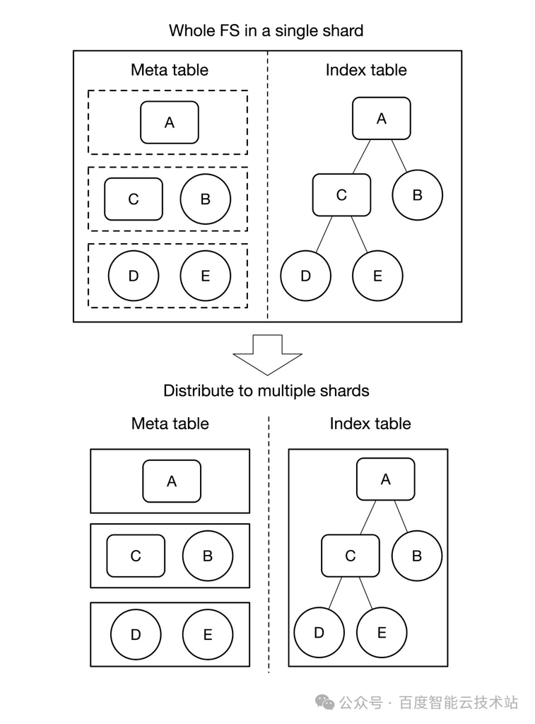 起初,我们直觉地认为:既然是单机模式,就不需要 IndexNode 这种复杂的组件来加速路径解析,直接采用类 CFS 表结构岂不更轻量?于是,我们设计了一个看似合理的异构方案:小规模场景使用类似 CFS 的单表结构,大规模场景才启用带有 IndexNode 的双表结构。