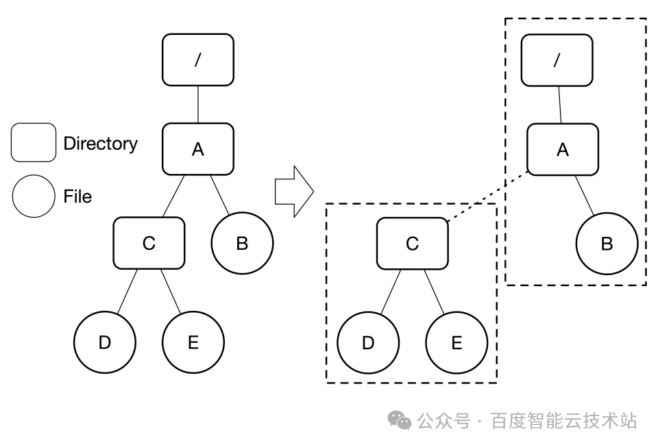 - 小规模场景性能不佳:分布式架构固有的通信与事务开销,在小规模(单机可承载)场景下反而成为了累赘。以简单的 rename /A/C/E/ A/E 操作为例,在单机系统中,这仅需在本地内存中修改指针即可完成。然而在目录分区架构中,由于源父目录(/A/C)与目的父目录(/A)往往分布在不同分片,这一操作退化为昂贵的跨分片事务。这种为了扩展性而牺牲局部性的设计,导致在不需要大规模扩展的小场景下,其性能表现反而显著弱于传统的单机方案。