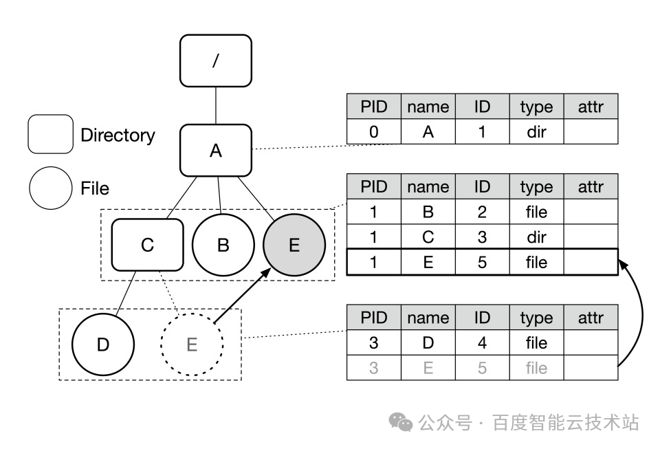 方案原理:以百度内部类 Tectonic 系统(CFS Namespace 1.0)为例,其表结构设计如下: