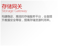 是业界领先的用于构建存储调度保护平台的新一代存储网关。面向有存储集中管理、数据安全保护及云计算建设需求的客户,提供异构存储整合...点击详情