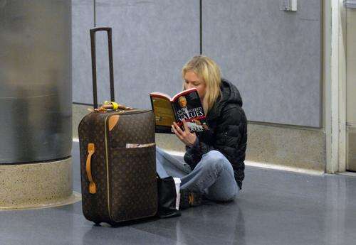 Renee Zellweger immerses herself in ‘Our Endangered Values: America’s Moral Crisis’ by Jimmy Cater as she waits patiently for her luggage at LAX airport. Despite her A-list status, the star wheeled her own luggage to a nearby taxi stand and hopped in a cab.